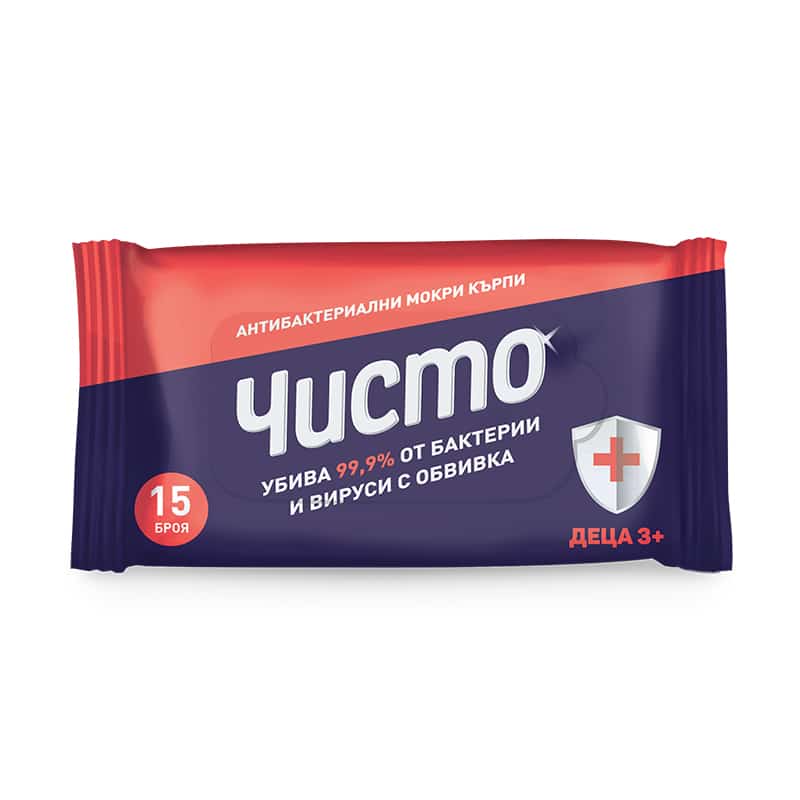 Chisto Антибактериални мокри кърпи Kids 3+ представляват висококачествени мокри кърпички за ръце, които не изсушават кожата. Чисто Антибактериални мокри кърпи за деца 3+ се отличават със своя мощен дезинфекциращ ефект. Благодарение на специалната си формула успяват да унищожат 99,9% от бактериите и вирусите с обвивка, залепнали по кожата. Кърпичките притежават и силни овлажняващ и омекотяващ ефект. Имат бактерицидно, фунгицидно и частично вирусоцидно (вируси с обвивка) действие. Направени са от плътна и мека материя, която спомага за деликатното и ефективно почистване. Подходящи за употреба в клас, на път, в градския транспорт, на излет. Служат за бърза и сигурна дезинфекция. За деца над 3-годишна възраст. С пластмаса.
