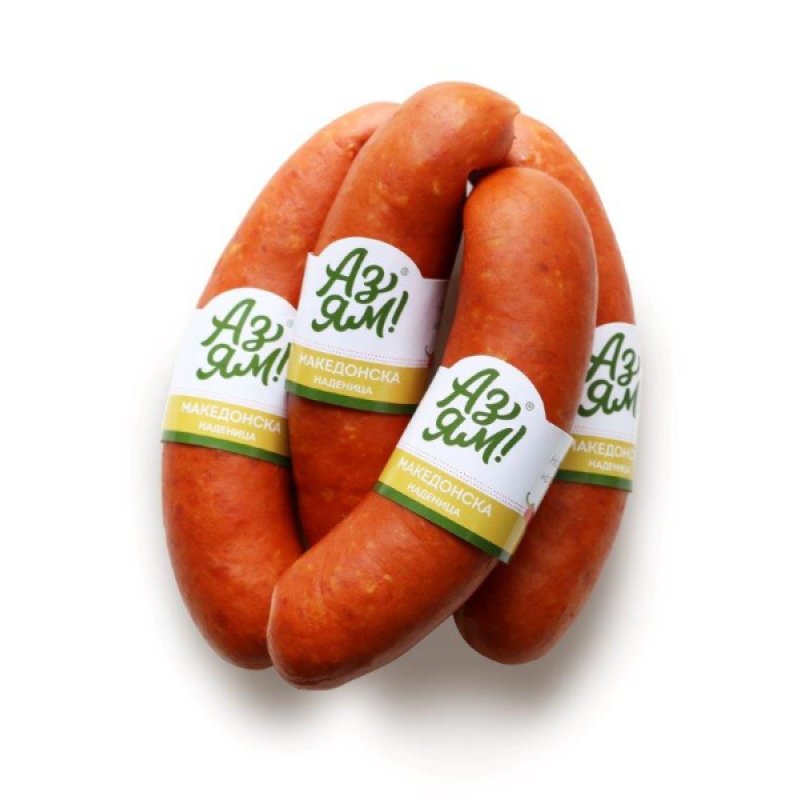 Съставки: свинско месо, сланина, вода, модифицирано картофено нишесте, сол; стабилизатор: дифосфат; екстракти от подправки (черен пипер, чесън, ЦЕЛИНА); овкусител: мононатриев глутамат; растителен бульон (подправки, сол, рапично олио), подправки; антиоксиданти: натриев ериторбат, натриев цитрат, аромат на пушек, ароматизанти, лук, зеленчукови фибри; регулатор на киселинността: натриев ацетат; МЛЕЧЕН ПРОТЕИН - 0.4%, червен пипер, чесън; консервант: натриев нитрит; декстроза; оцветител: кармин.