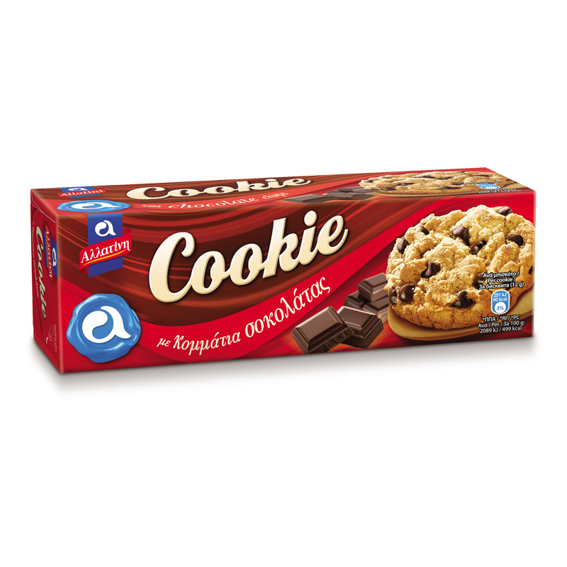 СЪСТАВ:ПШЕНИЧЕНО брашно,шоколадови парченца (19%) (захар, какаова маса, какаово масло, емулгатор: СОЕВ лецитин), разстителни мазнини (палмово масло), захар, набухватели (амониев хидрогенкарбонат, натриев хидрогенкарбонат, винена киселина), суроватка на прах (МЛЯКО). Може да съдържа следи от яйца, сусам, ядки.