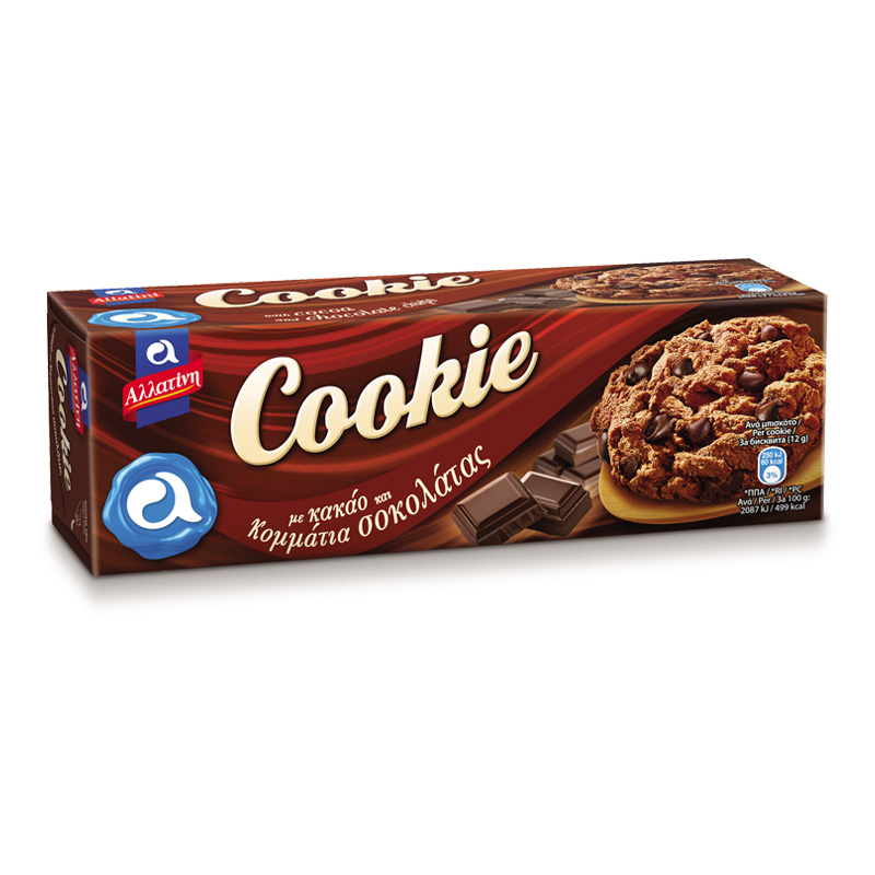 Съставки: пшенично брашно, шоколадови парченца (19%) (захар, какаова маса, какаово масло, емулгартор: соев лецитин), растителни мазнини (палмово масло), захар, набухватели (натриев хидроген карбонат, амониев хидроген карбонат винена киселина), суроватка на прах (мляко), сол, декстроза, аромати. Може да съдържа следи от яйца, сусам, ядки.