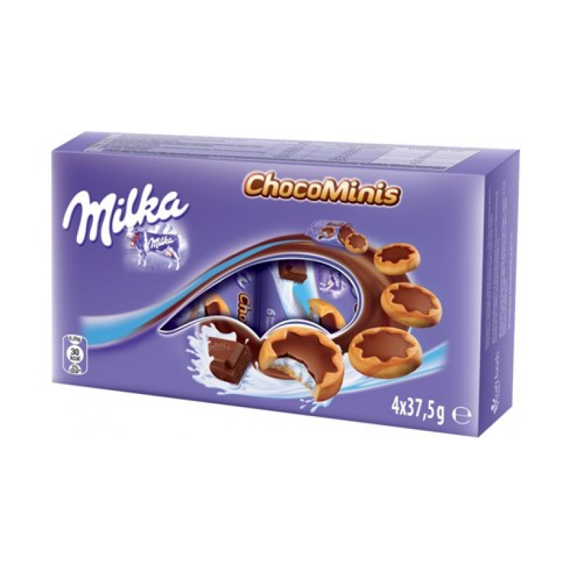Съставки: пшенично брашно, млечен шоколад 23% с алпийско мляко[захар, какаово масло, какаова маса, обезмаслено млчко на прах,суроватъчна пудра (от мляко), дехидратиранa млечна мазнинa, емулгатори (соев лецитин, Е476), ароматизант], захар, растителни масла (палмово, рапично), суроватъчна пудра (от мляко), пълномаслено мляко на прах, глюкозен сироп, лактоза (от мляко), сол, набухватели(амониеви карбонати, натриеви карбонати), емулгатор (соев лецитин), ароматизанти, киселина (лимонена киселина).