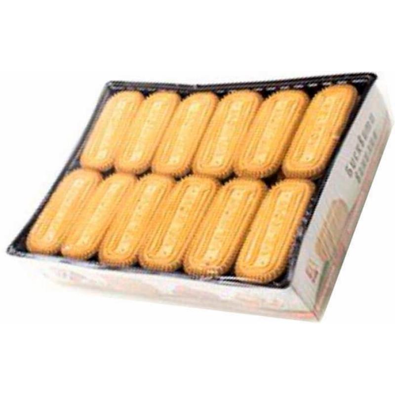 Съставки: Пшенично брашно, захар, растителни масла ( палмово, слънчогледово ), суроватка на прах, сироп на инвертна захар ( питейна вода, захар, регулатор на киселинността - лимонена киселина ), соево брашно, набухватели ( натриев бикарбонат, амониев бикарбонат, натриев пирофосфат ), сол, ароматизант - ванилия, емулгатор ( естери на винената киселина с моно- и диглицериди на мастни киселини ).