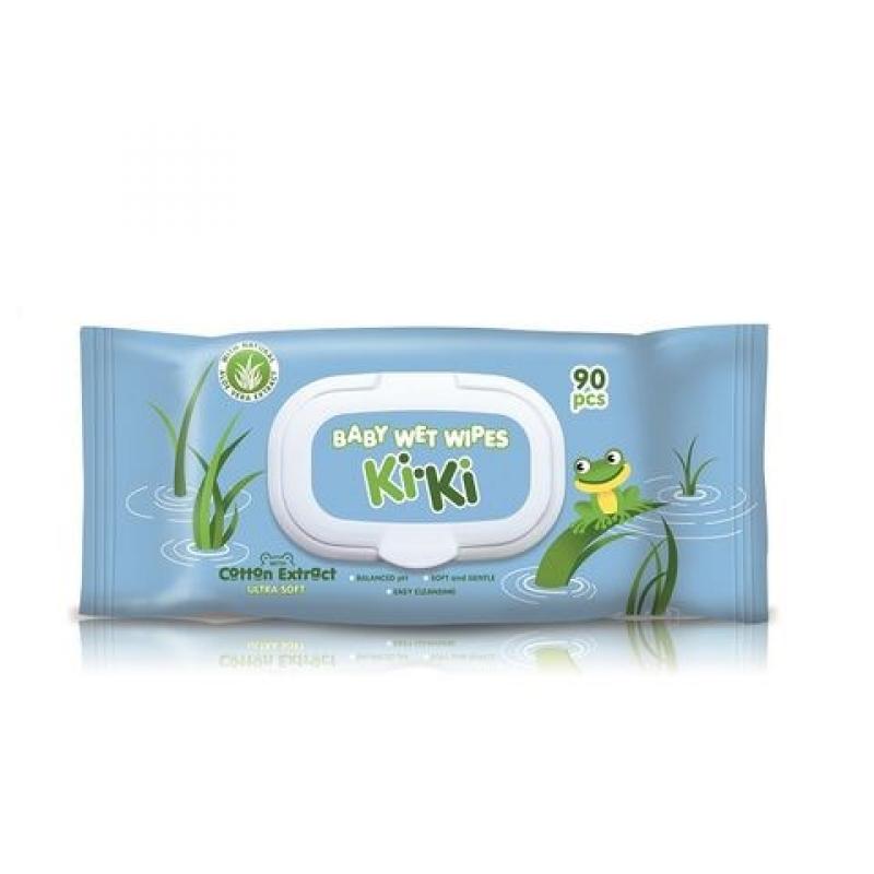 Kiki Бебешки влажни кърпички с капак са специално създадени за почистване на нежната бебешка кожа без да я изсушават. Те са изработени от мек текстил, а специална формула без парабени и феноксиетанол е напоена с натурални екстракти от алое вера и памук, в резултат на което кожата е освежена и нежно почистена. Памукът омекотява и успокоява кожата, а екстрактът от алое вера действа възстановяващо и хидратиращо. Kiki Бебешки влажни кърпички са в удобна опаковка, лесно се изваждат една по една и имат пластмасов капак, който перфектно изолира пакета и запазва свежестта им през цялото време на употреба. Те са подходящи при смяна на пелените, след хранене, при разходка, пътуване и игри.