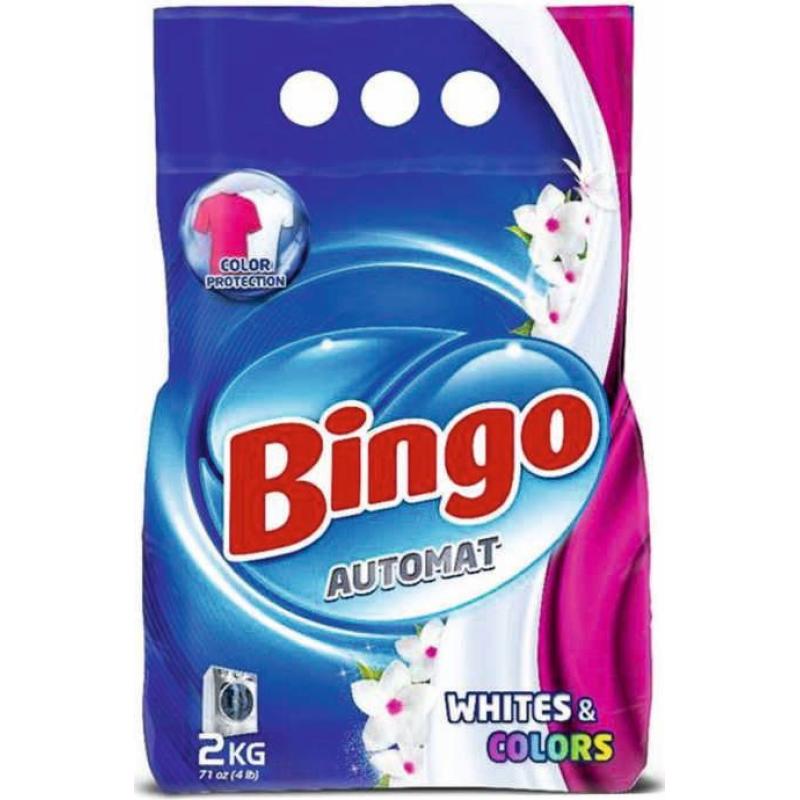 Bingo White and Colors е прах за пране, предназначен да отстрани и най-упоритите петна и замърсявания от дрехите, запазвайки тяхните естествени цветове. Прахът е с уникална формула, която освен да премахва замърсяванията осигурява свеж дълготраен аромат.Подходящ за бяло и цветно пране.