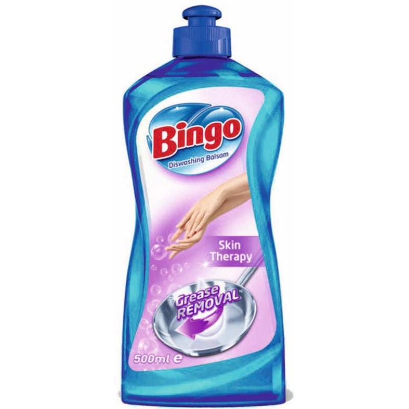 Bingo Skin Therapy е почистващ препарат за съдове, предназначен да отстранява най-упоритите мазнини и замърсявания, оставяйки безупречно чисти кухненски прибори. По време на миене на чинии, препаратът образува пяна, която осигурява лесното отстраняване на замърсяванията.