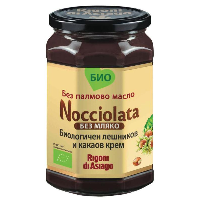 Съставкаи: Сурова захар*,лешникова паста*19.5%,слънчогледово олио*,нискомаслено какао на прах*11%; какаово масло*,емулгатор:соев лецитин*,ароматизант:екстрат от ванилия*може да съдържа следи от други ядки:(бадеми,орехи,шам-фъстъци).*Биологични съставки Хранителни стойности за 100 г Енергийност (ккал/ kJ) 545 kcal /2273 kJ Въглехидрати (г) 55 от които захари (г) 53 Мазнини (г) 33 от които наситени (г) 5.5 Протеини (г) 5.4 Сол (г) 0