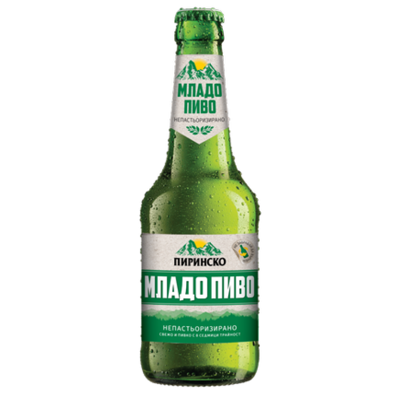 Състав: вода, ечемичен малц, ечемик, царевичен грис, хмел Бира Пиринско Младо Пиво е непастьоризирано пиво със свеж вкус, кристална бистрота и трайност само 8 седмици. Липсата на пастьоризация запазва първичната свежест на пивото за сметка на трайността му. При производството на Младо пиво се използва специален филтър, който пречиства течността, за да бъде кристално бистра и пивка, и същевременно спомага за запазване на свежестта й до 8 седмици. Естеството на продукта налага той да се предлага единствено в стъклена бутилка.