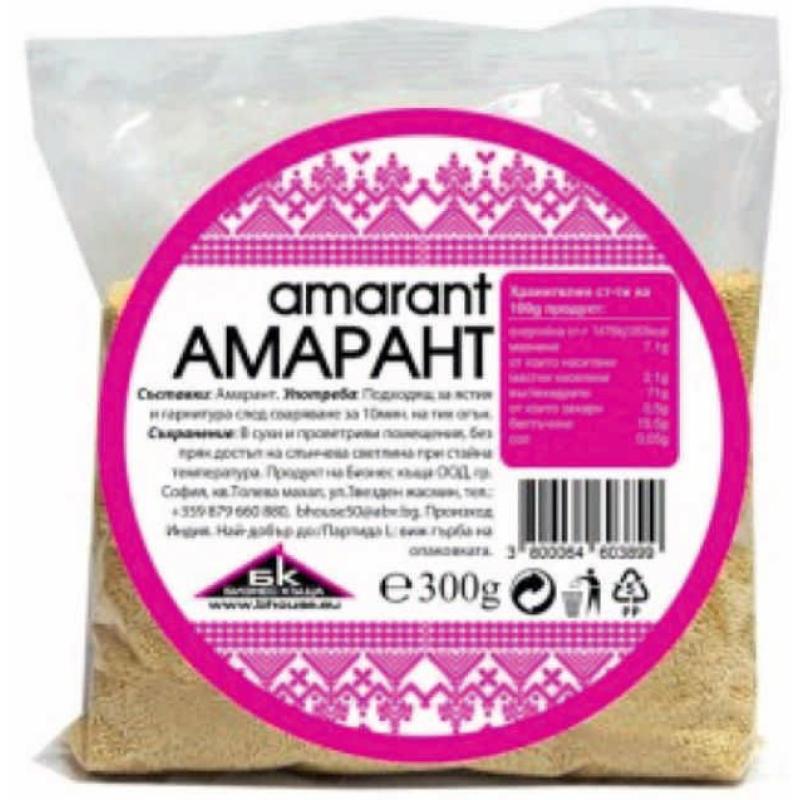 Описание: Амарантът е с високо съдържание на лизин и протеини. Не съдържа глутен, което го прави подходящ за хора, страдащи от глутенова ентеропатия, хранителна алергия, стомашно-чревни заболявания, сърдечно-съдови заболявания, онкологични проблеми, за работещи при тежки условия и за всички привърженици на здравословния начин на живот.