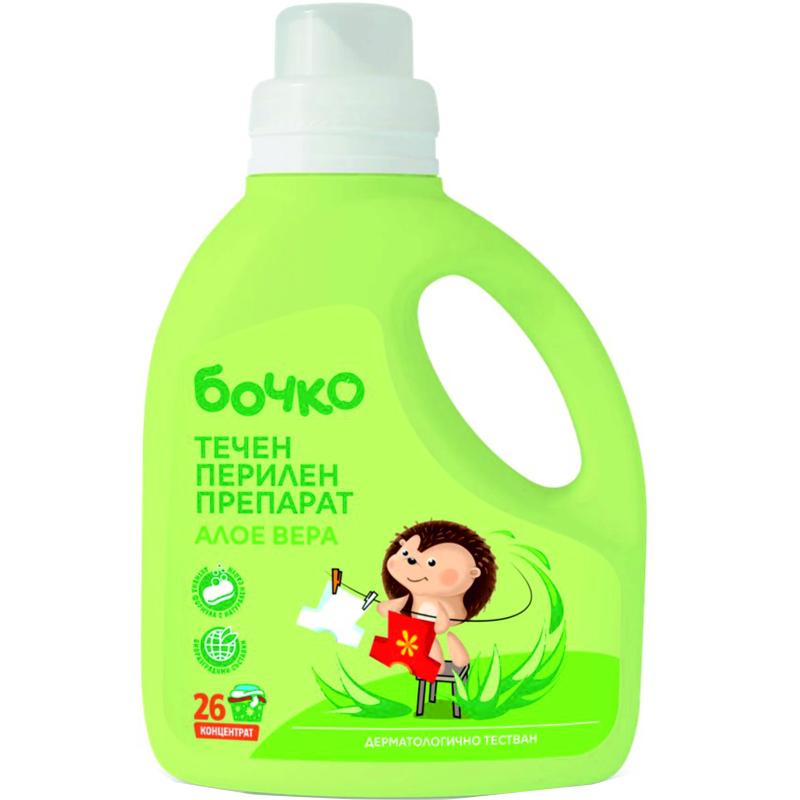 Формулата на течен перилен препарат Бочко е с вложен натурален сапун. Има отлично изпиращо действие и е изключително нежeн към чувствителната бебешка кожа. Вложеният екстракт от алое вера има успокояващо действие, благодарение на което предпазва кожата от раздразнения и помага за омекотяване на тъканите. Този верен помощник съдържа 100% разтворими активни съставки, които не остават в бебешките дрешки след изпиране и изплакване. Не съдържа оцветители и фосфати. С отличен изпиращ ефект дори при 30°C.