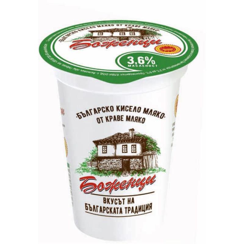 Произведено по стара българска рецепта от качествени краве млека, доставени от одобрени елитни ферми. Краве кисело мляко „Боженци” е претърпяло процес на млечно – кисела ферментация под действието на закваска, съдържаща изолирани в България Лактобацилус булгарикус и Стрептококус термофилус, гарантиращи получаването на продукт с традиционния характерен вкус, типичния аромат и консистенция.