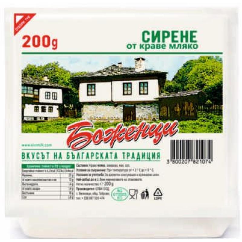 Краве сирене „Боженци” е произведено от свежо пълномаслено краве мляко, доставено от подбрани ферми, с добавка на закваска от млечнокисели микроорганизми, подсирено с мая за сирене, получило необходимата технологична обработка и претърпяло процес на зреене не по-малко от 45 дни.