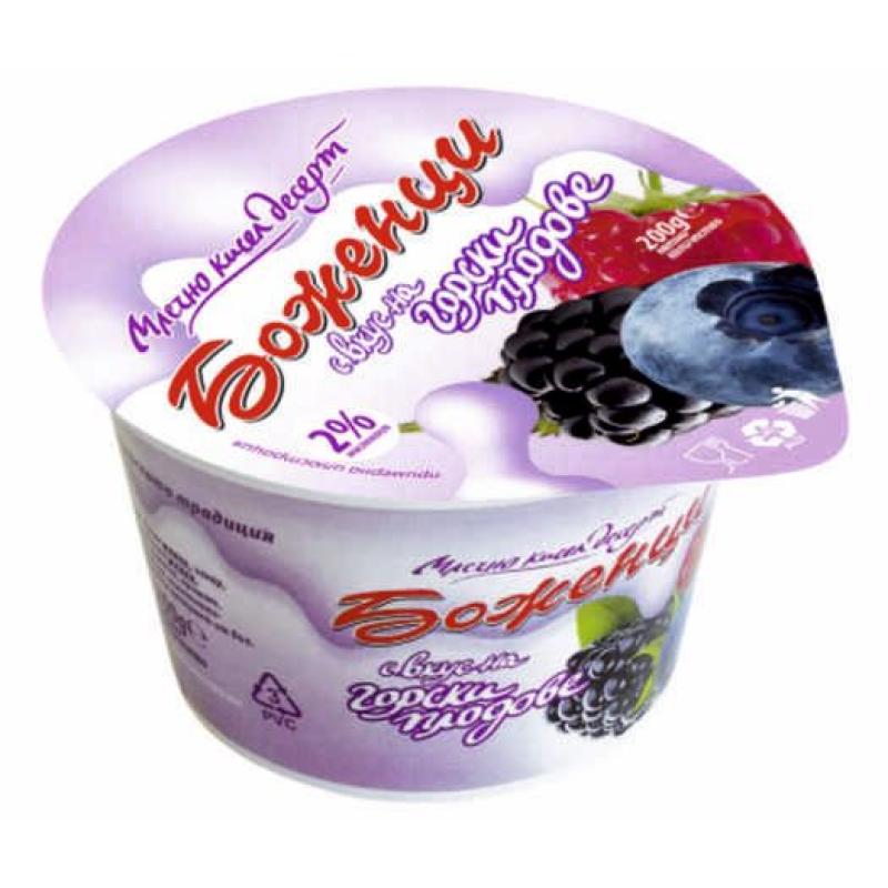 Млечнокисел десерт „Боженци” е частично обезмаслено краве мляко, мляко на прах, захар, аромат, натурален оцветител, претърпяло процес на млечно – кисела ферментация под действието на закваска, съдържаща Лактобацилус булгарикус и Стрептококус термофилус.