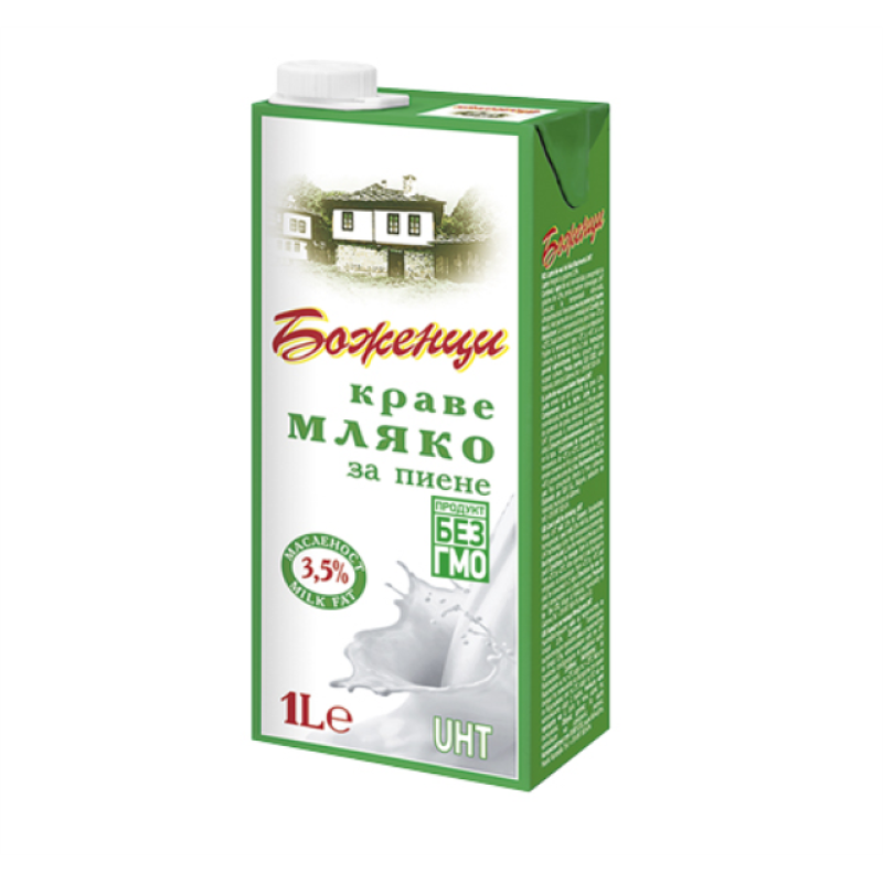 Краве мляко Боженци UHT е произведено за директна консумация от свежи краве млека. Предлага се в модерна опаковка, която осигурява възможност да се съхранява до 180 дни от датата на производство.