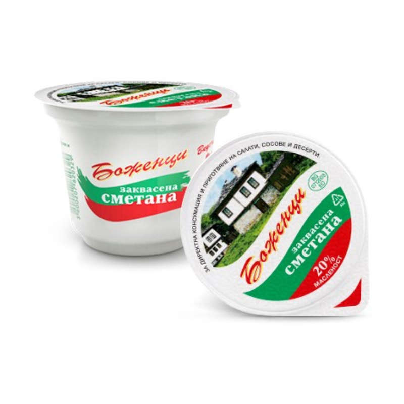 Заквасена сметана „Боженци” e хранителен продукт със завишено съдържание на млечна мазнина /20 %/, претърпяла процес на млечно – кисела ферментация под действието на закваска, съдържаща изолирани в България Лактобацилус булгарикус и Стрептококус термофилус.