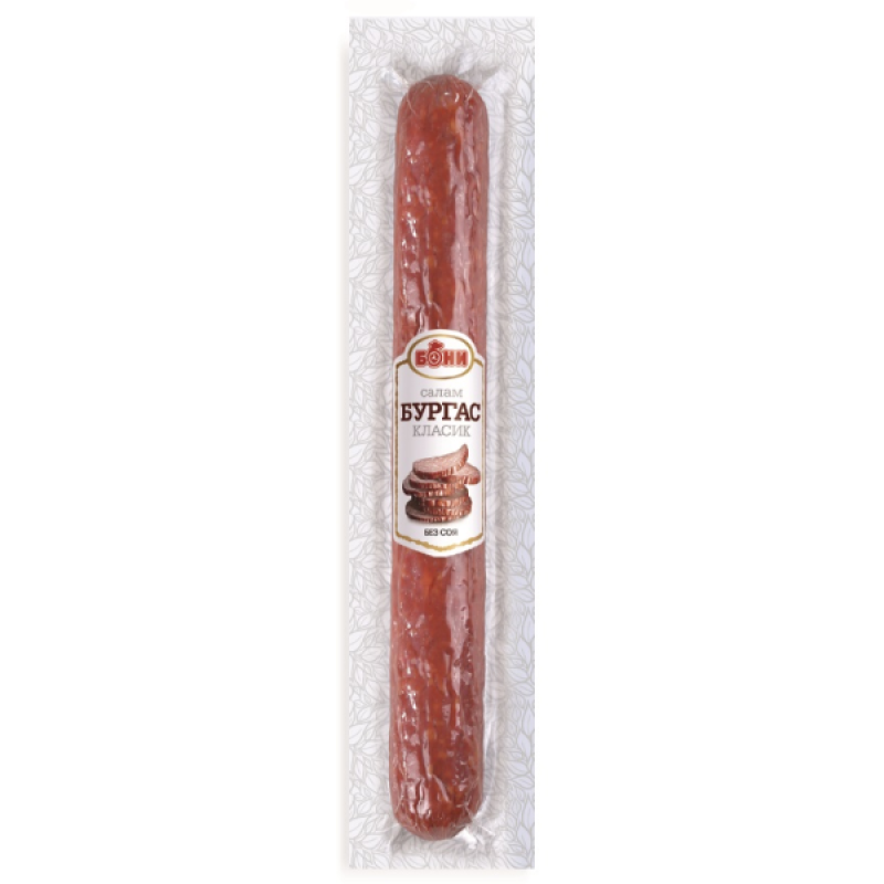 Съставки: свинско месо, сланина, нитритна сол (трапезна сол, консервант: натриев нитрит); декстроза, стабилизатори: дифосфати и трифосфати; подправки и екстракти от падправки; антиоксидант: аскорбинова киселина; естествени оцветители: кармини.Може да съдържа следи от: СОЯ, МЛЯКО, СИНАП И ГЛУТЕН.