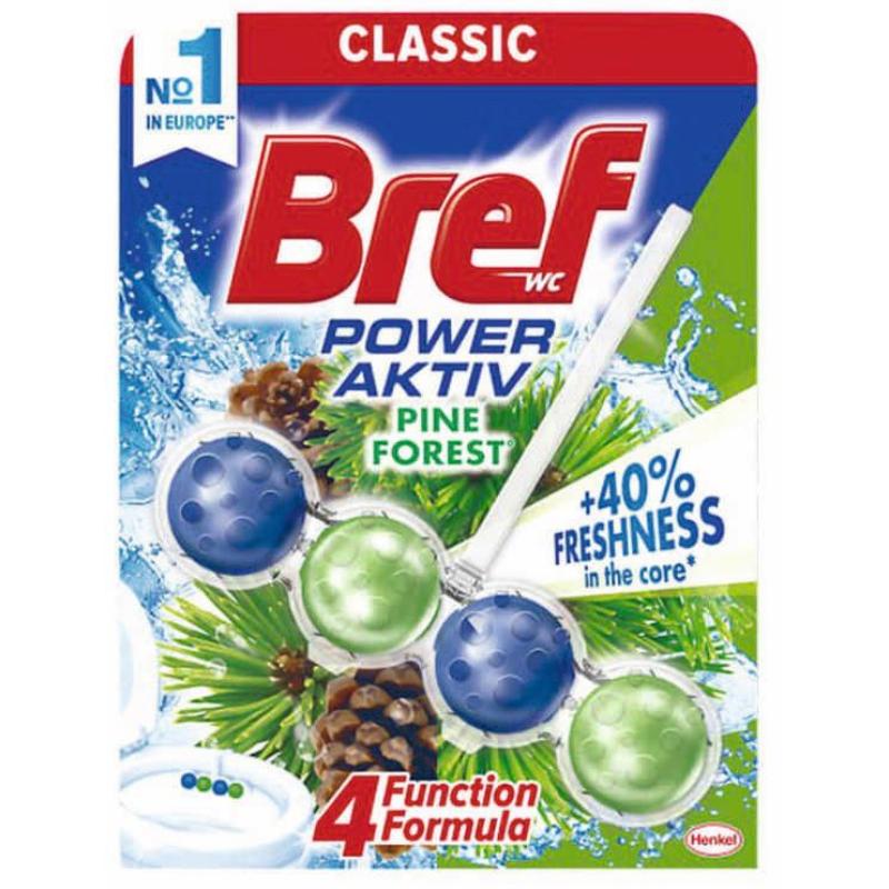 Твърдо тоалетно блокче Bref с концентрирано ядро. Наслади се на свежестта от първото до последното пускане на водата! До 40% повече свежест в ядрото на блокчето в сравнение с външната му обвивка