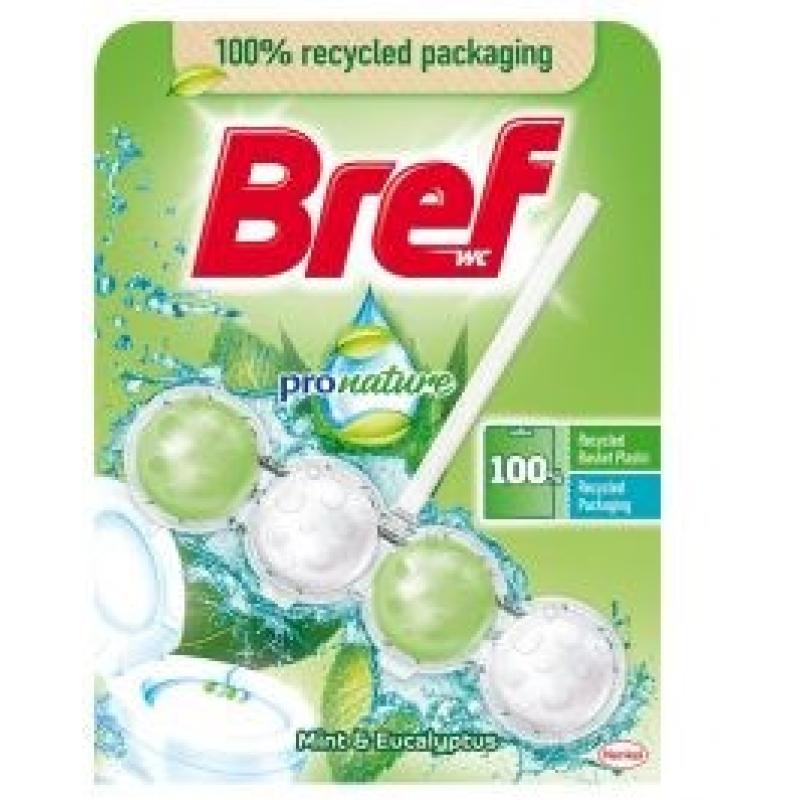 Твърдо тоалетно блокче, което: 1. Активно почистване, осигурява почистваща пяна и предпазва от мръсотия. 2. 100% рециклирани и рециклируеми пластмасова кошничка и картон. 3. Аромат на натурална мента и евкалипт за допълнителна свежест. 4. Подкрепя социалната оргазнизация Plastic Bank за намаляване пластмасата в океаните и предоставя възможности за хора в бедност в Хайти. 5. A.I.S.E. - критерии, изпълнени от Хенкел за устойчива бизнес практика.