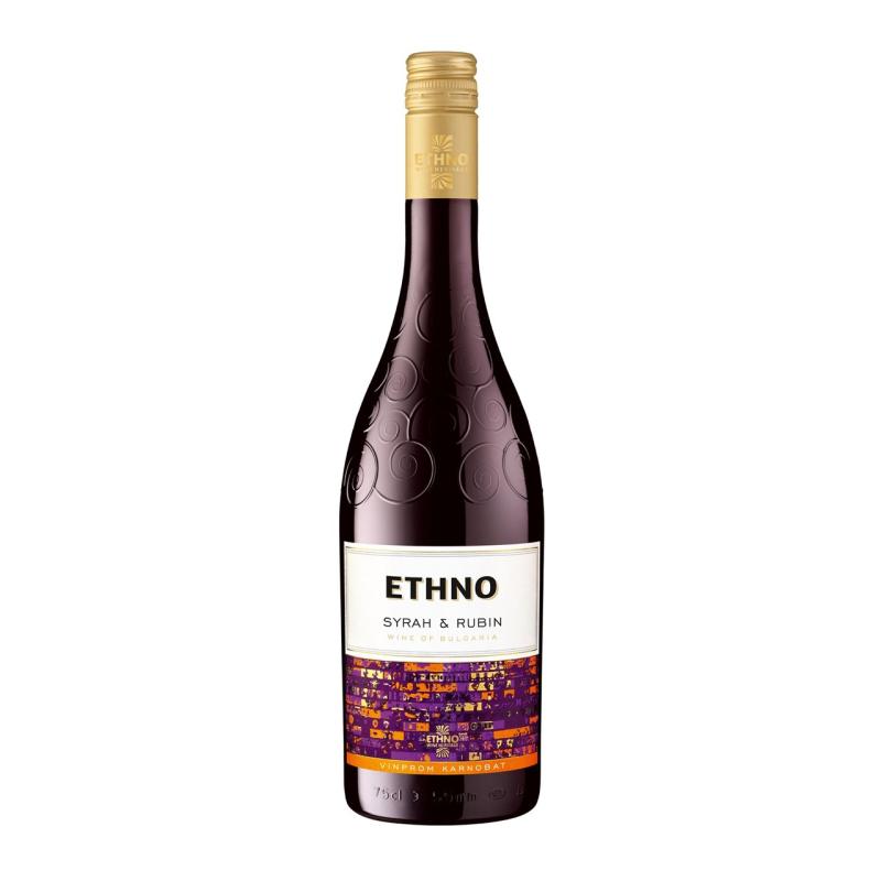 Ethno Syrah and Rubin 2017 0.75 / Червено вино Сира и Рубин Етно 2017г. 0,75л. Винарска изба Етно, България Етно е приключение - вълнуващо и прекрасно, с което опознаваме себе си и другите около нас, улавяме техните емоции и им подаряваме нашите, вдъхваме аромата на далечни страни и преоткриваме автентичният български вкус. Червено сухо вино от сортовете Сира и Рубин. Регионално вино от Тракийската низина. Алк.: 14 %