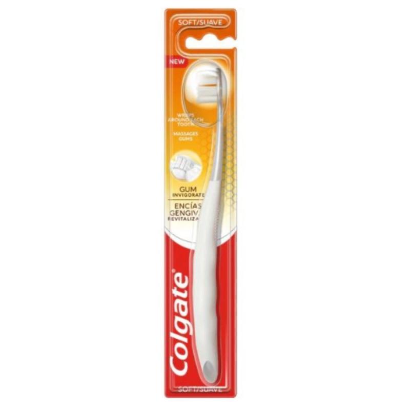 Четката за зъби Колгейт е разработена за защита на венците. С малка кръгла глава, която ? позволява да обгръща всеки зъб и да достига до труднодостъпните места в устата. Ергономичен дизайн със заоблена дръжка за удобство и добро захващане. Четката има гъсти власинки с тънък връх, които меко масажират венците.