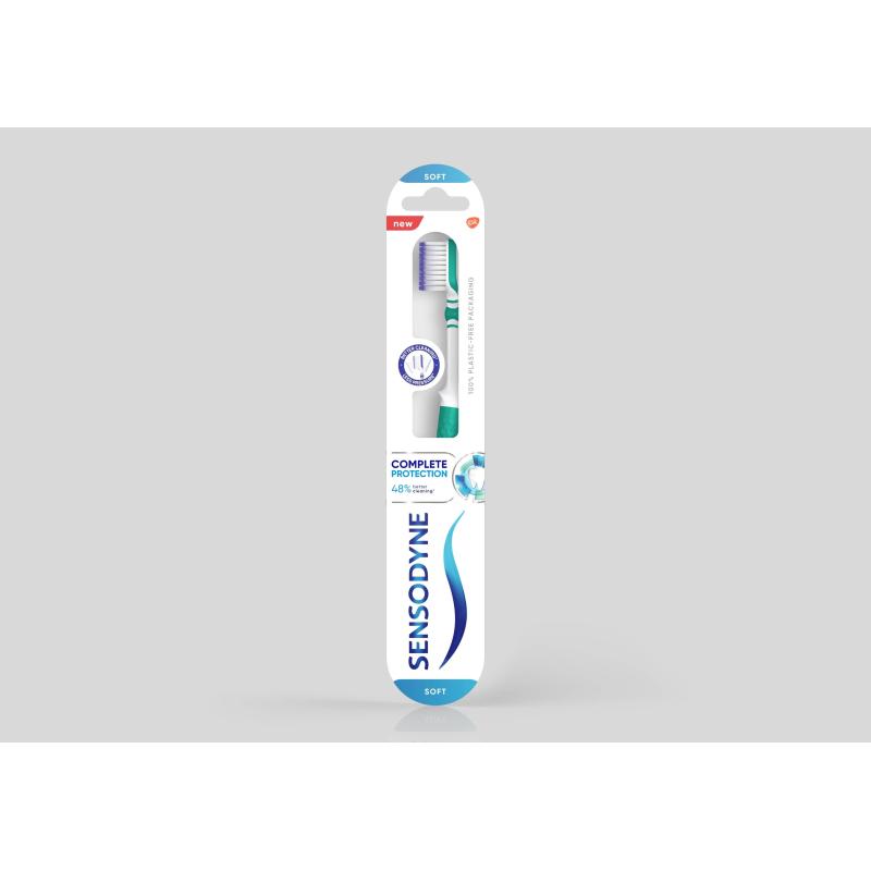 Четката за зъби Sensodyne Complete Protection спомага за премахване на плаката, почистване на венците и емайла. С наклонена под ъгъл глава, меки и извити влакна, четката за зъби Sensodyne Complete Protection е създаена за хора с чувствителни зъби и венци.