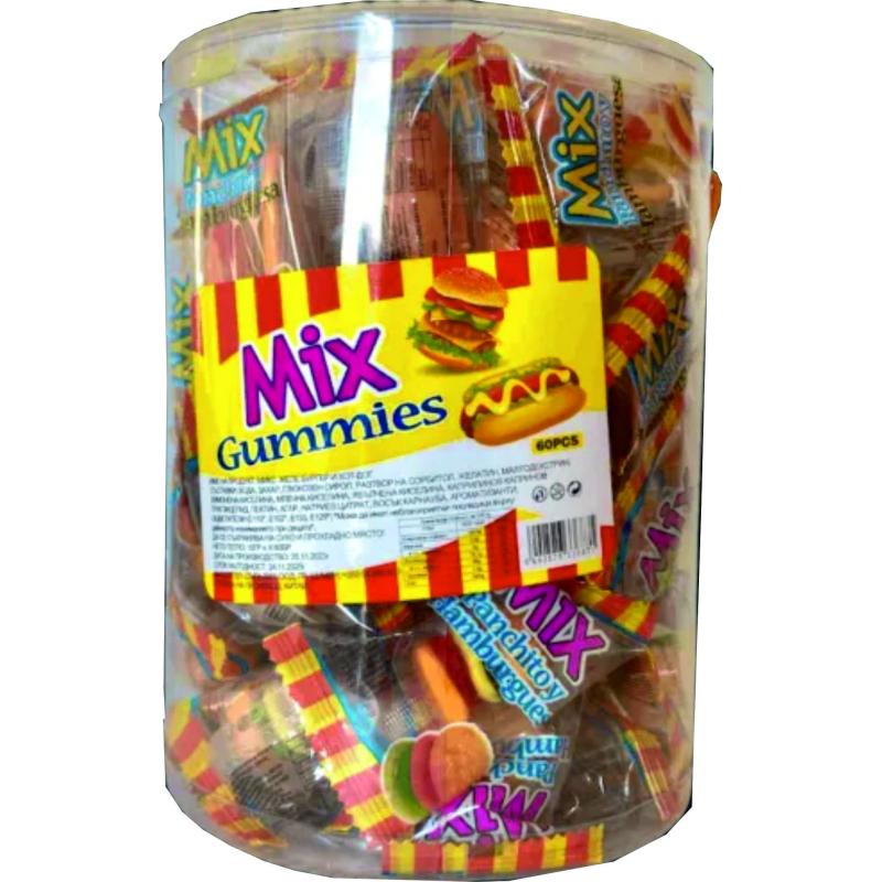 Състав - вода , захар , глюкозен сироп , разтвор на сорбитол , желатин ,малтодекстрин , лимонена киселина , млечна киселина , ябълчена киселина , каприлинов капринов триглицерид , пектин, агар , натриев цитрат , восък карнауба , ароматизанти , оцветители .