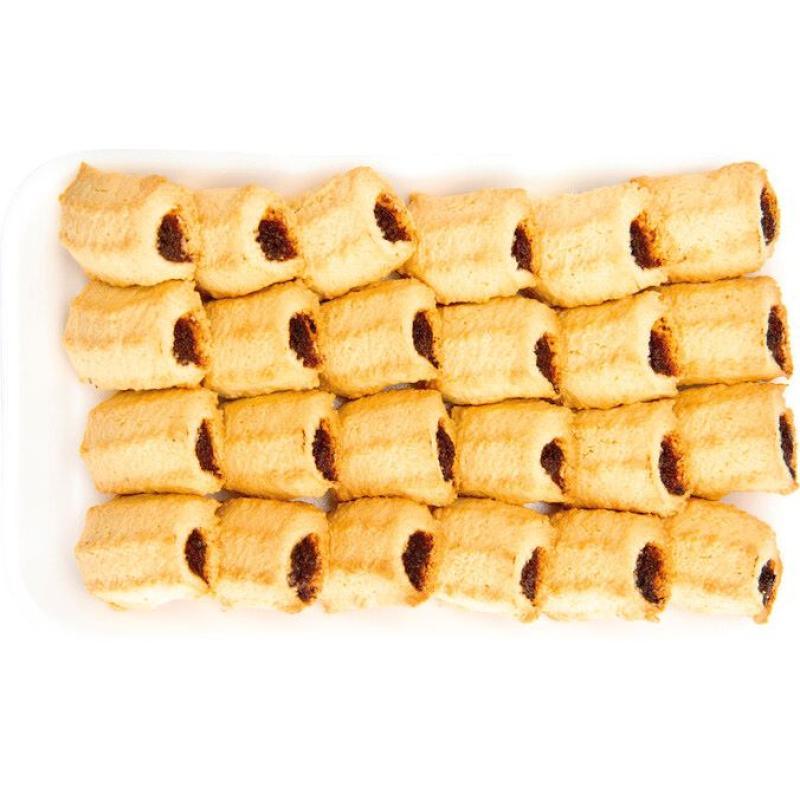 Съставки: пшенично брашно тип 500, мармалад 50%(глюкозо-фруктозен сироп, ябълково брашно, регулатор на киселинност: лимонена киселина, консервант: калиев сорбат, натриев бензоат), маргарин(нехидрогенирано палмово масло, вода, емулгатор:Е471, Е475, Е322, сол, регулатор на киселинност: млечна киселина, оцветител: бета каротин, консервант: сорбинова киселина, аромат), захар, яйчен меланж, набухватели(натриев, амониев бикарбонат), емулгатор(моно и диглецириди на мастните киселини).