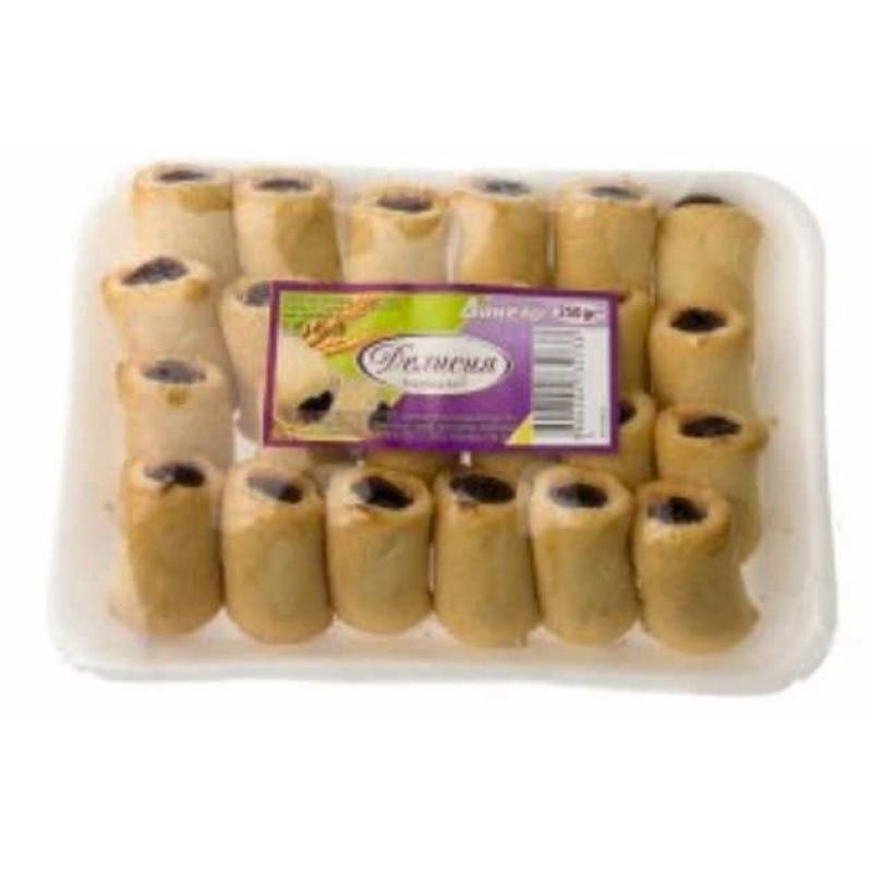 Съставки: пшенично брашно тип 500, локумена паста 24%(захар, глюкоза, вода, пшенично нишесте, стабилизатор: ксантан гума, консервант: натриев бензоат, регулатор на киселинност: лимонена киселина, оцветител: ликопен), маргарин(растителни масла: палмово, кокосово, рапично, частично хидрогенирано палмово масло, вода, емулгатор:Е471, Е475, Е322, сол, регулатор на киселинност: млечна киселина, оцветител: бета каротин, консервант: сорбинова киселина, аромат), захар, аромат: боровинка 1%.