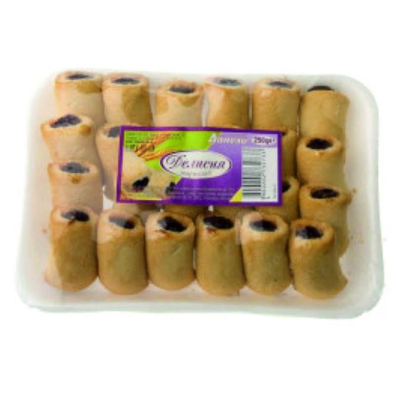 Съставки: пшенично брашно тип 500, локумена паста 24%(захар, глюкоза, вода, пшенично нишесте, стабилизатор: ксантан гума, консервант: натриев бензоат, регулатор на киселинност: лимонена киселина, оцветител: ликопен), маргарин(растителни масла: палмово, кокосово, рапично, частично хидрогенирано палмово масло, вода, емулгатор:Е471, Е475, Е322, сол, регулатор на киселинност: лимонена киселина, оцветител: анато, консервант: калиев сорбат, аромат), захар.