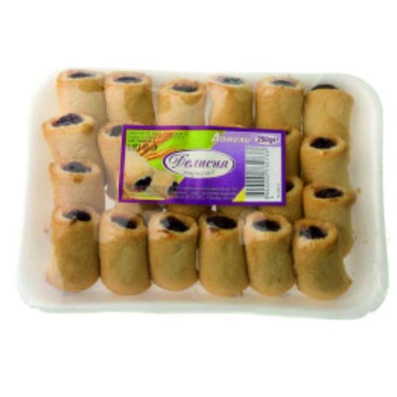 Съставки: пшенично брашно тип 500, мармалад от ябълки 23% ((ябълки 50%, ябълково брашно, глюкозо- фруктозен сироп, регулатор на киселинност: лимонена киселина, консерванти: калиев сорбат, натриев бензоат), маргарин(растителни масла: палмово, кокосово, рапично), частично хидрогенирано растително масло, вода, емулгатори(Е471, Е475, Е322), сол, регулатор на киселинност(лимонена киселина), консервант(калиев сорбат), оцветител: анато, аромат)), захар, емулгатор(моно и диглецириди на мастните киселини).