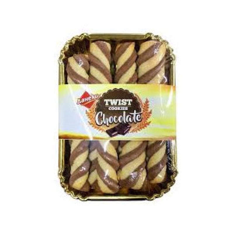 Съдържание: пшенично брашно тип 500, маргарин(растителни масла: палмово, кокосово, рапично, частично хидрогенирано палмово масло, вода, емулгатор: моно и диглецириди на мастните киселини, лецитин, сол, регулатор на киселинност: лимонена киселина, оцветител: анато, консервант: калиев сорбат, аромат), какаов пълнеж с лешници 13% (захар, растителни масла: слънчогледово, палмово, нискомаслено какао на прах 12%, модифицирано нишесте, лешникова паста 1,8%, емулгатор: слънчогледов лецитин, растителна мазнина: палмова, ароматизант), пудра захар, сироп от глюкоза, какао, ароматизант: шоколад 1%.