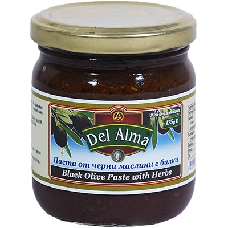 Пастата от черни маслини с билки на Del Alma e продукт, направен от висококачествени черни маслини, подправени с билки, които обогатяват вкуса.
