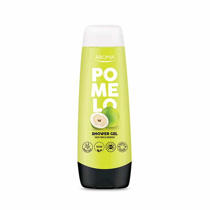 Състав:AQUA, SODIUM LAURETH SULFATE, COCAMIDOPROPYL BETAINE, SODIUM CHLORIDE, PARFUM, LIMONENE, LINALOOL, HEXYL CINNAMAL, GLYCERIN, PEG-18 GLYCERYL OLEATE/COCOATE, TETRASODIUM GLUTAMATE DIACETATE, BENZOPHENONE-4, STYRENE/ACRYLATES COPOLYMER, POLYQUATERNIUM-7, COCO-GLUCOSIDE, CITRIC ACID, LACTIC ACID, SODIUM HYDROXIDE, BENZYL ALCOHOL, METHYLCHLOROISOTHIAZOLINONE, METHYLISOTHIAZOLINONE, BENZOIC ACID, CI 19140, CI 42090.Душ гел Aroma Pomelo е продукт за тяло със свеж цитрусов аромат на помело. Нежно измива и тонизира кожата, оставя дълготрайно усещане за свежест и комфорт. Формула с 98,8% натурални съставки.