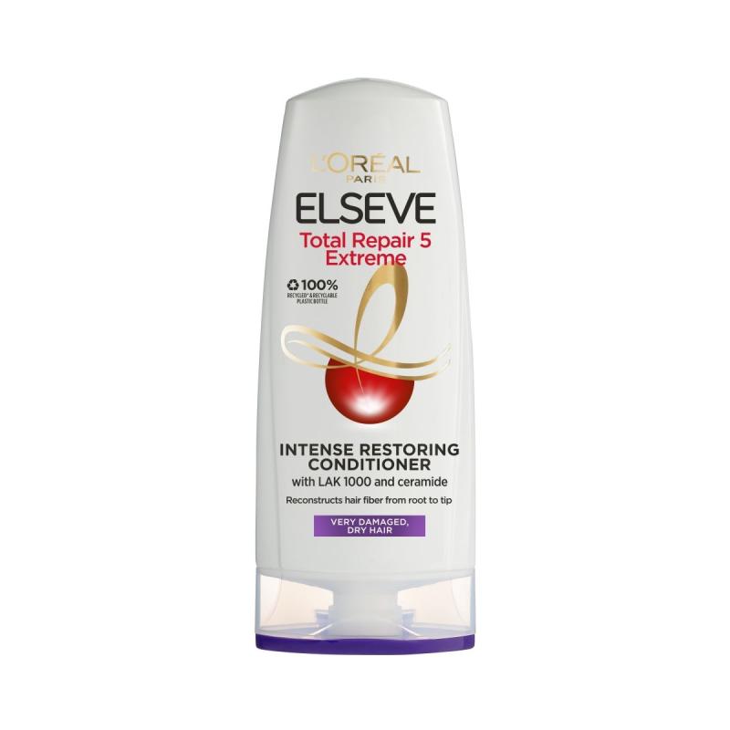 Възстановява, регенерира и ревитализира увредената коса - балсам за възстановяване на косата Elseve Total Repair 5. Неговата интензивна подхранваща формула с невен възстановява увредената коса и укрепва нейната структура. Косата придобива блясък и мекота и става по-устойчива. За жизнена, гладка и мека коса.