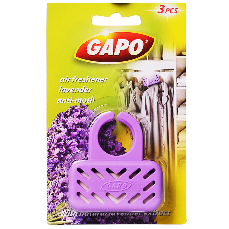 Съдържа: PVC, парфюм, Цитрал, Цитронелол, Кумарин, Гераниол, Линалол.С аромат на лавандулаС естествени екстракти.Освежава тъканите.Не оставя следи по дрехите.Gapo Ароматизатор с лавандула представлява кошнички с естествени екстракти за защита срещу миризми като освежават тъканите с приятен и дискретен аромат. Не оставя следи по дрехите.