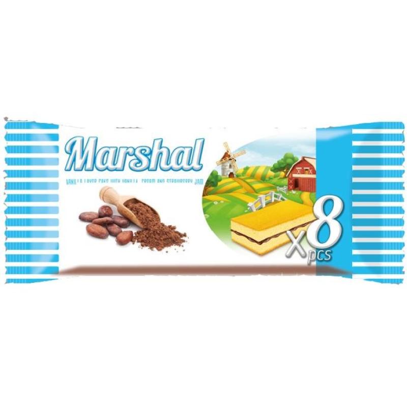 Съставки: пшенично брашно тип 500, вода, бяла кристална захар, яйчен меланж, инвертен сироп, гликоза, влагозадържащ агент (глицерол, пропилен гликол), царевично нишесте, суха суроватка, емулгатор (моно и диглецириди на мастните киселини, полиглицерол естери, сорбитол сироп и пропилен гликол), набухватели (натриев пирофосфат, сода бикарбонат, амонячна сода), сол, консервант (калиев сорбат), регулатор на киселиността (лимонена киселина), ароматизант. Сироп: глюкозо- фруктозен сироп, вода, стабилизатор (глицерол), ароматизант, консервант (калиев сорбат).