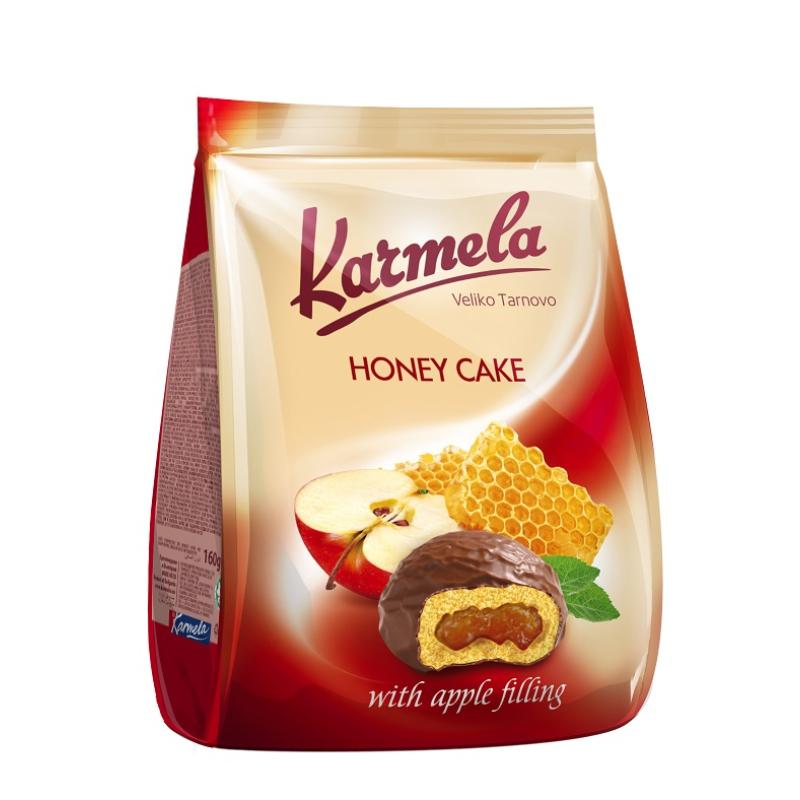 Съдържание:пшеничено брашно,захар,пчелен мед,глицерин,растителна мазнинана,канела на прах,ароматизант,консервант,карамфил,оцветител,регулатор на киселиност,мармалад ябълка,ябълки,глюкозо-фруктозен сироп,ябълково брашно,регулато на киселиността,консерванти, какаов ковертюр:захар,рафинирана растителна мазнинан,стабилизатор,емулгатор,антиоксидант,нискомаслено какао на прах,суроватка на прах,обезмаслено мляко на прах,емулгатори,ароматизант.