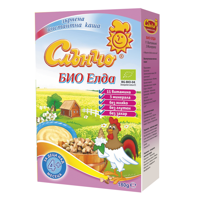 Храната е обогатена с 11 витамина и съдържа като естествени съставки незаменими аминокиселини, ненаситени мастни киселини и микроелементи, необходими за задоволяване на хранителните потребности на Вашето дете.Кашите “Слънчо” са предназначени за консумация от кърмачета в периода на отбиване от кърмене и от малки деца за постепенната им адаптация към храната на възрастните хора.