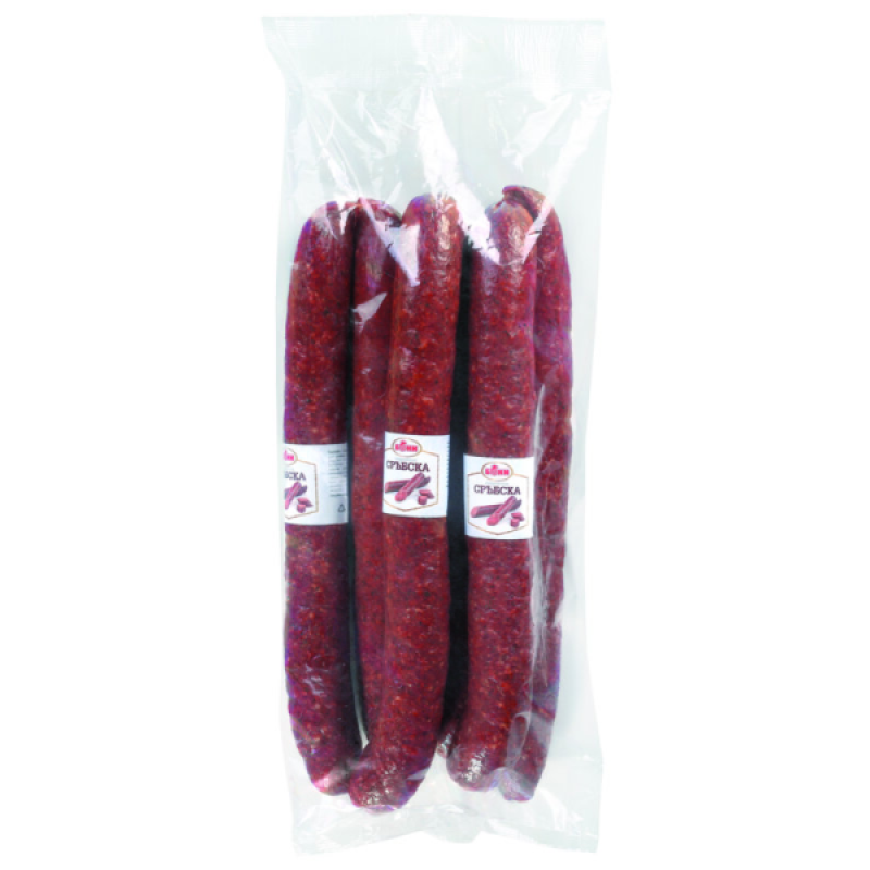 Съставки: свинско месо, сланина, нитритна сол (консервант: натриев нитрит, готварска сол), СОЕВ ПРОТЕИН, ДЕКСТРОЗА, ЛАКТОЗА, стабилизатор: полифосфати; киселинен регулатор: глюконо-делта лактон, антиоксидант: натриев ериторбат, подправки, стартерни култури, оцветител: кармини. Може да съдържа следи от ГЛУТЕН. Хранителна стойност за 100g продукт: енергийна стойност 1581kJ/ 382kcal; мазнини 25.5g, от които наситени мастни киселини 7.5g; въглехидрати 3.5g, от които захари 1.5g; белтъци 12.5g; сол 2.15g.