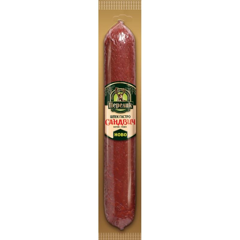 Съставки: механично отделено пилешко месо, сланина, свински сърца, вода, механично отделено пуешко месо, нишесте, СОЕВ ПРОТЕИН, кожна емулсия (свински кожи, вода, сол, стабилизатори: дифосфати, полифосфати), сол, декстроза, антиоксиданти: аскорбинова киселина, Е316 стабилизатори: дифосфати, трифосфати, полифосфати, регулатор на киселонността: Е575 оцветител: кармини, овкусител Е621, консервант: Е250, антислепващ агент: Е551, ароматизанти, чесън, подправки, СЪДЪРЖА СИНАП.