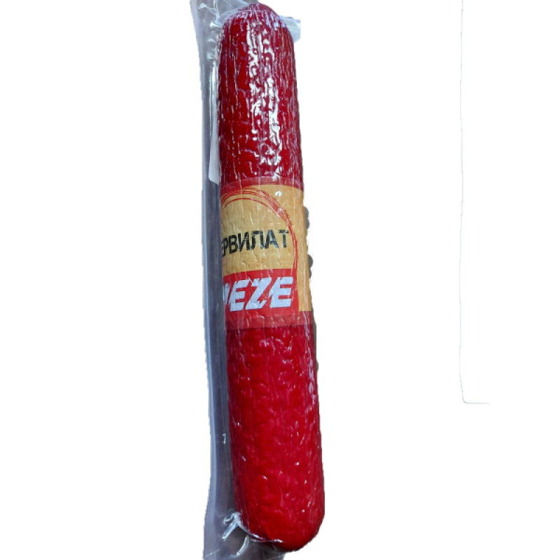 Съставки: свинско месо, сланина, механично отделено птиче месо, пилешка кожа, вода, свински протеини, зеленчукови фибри и аромати, сол, стабилизатор: натриев полифосфат, антиоксиданти: аскорбинова и изоаскорбинова киселини, натриев аскорбат, киселинен регулатор: калциев лактат, емулгатор-алгицид, хлориди и сулфати, усилвател на вкуса - мононатриев глутамат, консервант: натриев нитрит, оцветител: кармин, декстроза.