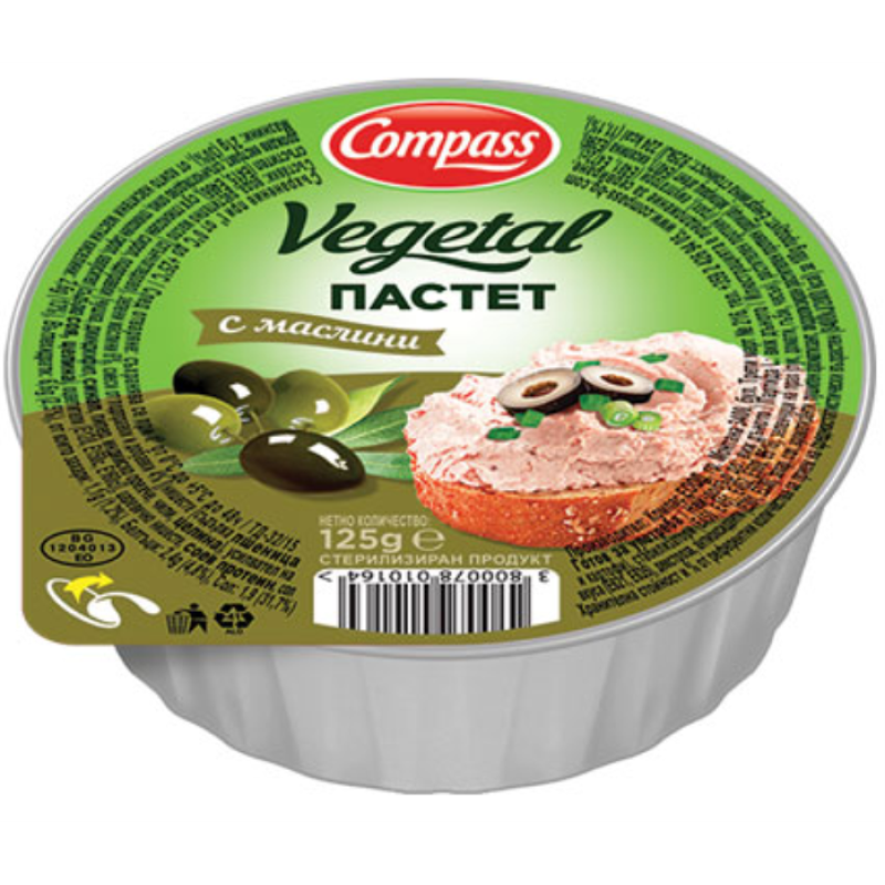 Съставки: вода, растително масло (слънчогледово), зелени маслини 6%, смеси от подправки и добавки 4%, (нишесте, съдържа пшеница, сгъстител (Е415, Е466), сух глюкозен сироп, подправки (чушка, джинджифил, синап, пипер, индийско орехче, чили, целина), дрождев екстракт, слънчогледово олио, глюкозен сироп, овкусител (съдържа соя, целина), оцветители (Е120, Е150с, Е160с), царевично нишесте, соев протеин, сол, картофи, стабилизатори (Е450, Е451, Е452, Е508, Е516), зеленчуци на прах (лук, домати, гъби, чесън), растителен протеин (грах), емулгатори (Е481, Е472с), декстроза, антиоксиданти (Е301, Е330), захар, сол, ароматизанти, пушилен ароматизант, хидролизиран растителен протеин (рапица), желиращ агент (Е407), киселина (Е296)