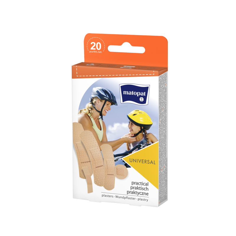 Пластири за рани с различни размери. Лепенките са изработени от еластичен материал, който приляга отлично към кожата. Използваните лепила са хипоалергични, а тампона от целулоза не залепва за раната.
