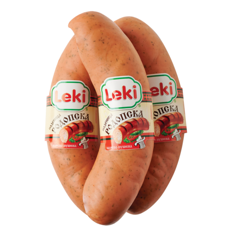 Съставки: свинско месо, механично отделено пуешко месо, вода, картофено нишесте, сол, антиоксиданти: аскорбинова киселина, Е301, Е316; стабилизатори: дифосфати, полифосфати, декстроза, овкусител Е621, свински протеин, оцветител: кармини; регулатор на киселинността: Е575; консервант: натриев нитрит, подправки (0,6%) (съдържа СИНАП). Пропеленти: азот, въглероден диоксид.