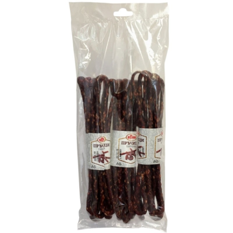 Съставки: свинско месо, сланина, нитритна сол (трапезна сол, консервант: натриев нитрит), СОЕВ ПРОТЕИН, свински протеин, ЛАКТОЗА, ДЕКСТРОЗА, киселинни регулатори: глюконо -делта -лактон, калциев лактат, сгъстител: натриев алгинат, антиоксидант: натриев ериторбат, стабилизатор: полифосфати, овкусител: мононатриев глутамат, оцветител: кармини, калциев хлорид, стартерни култури, подправки.