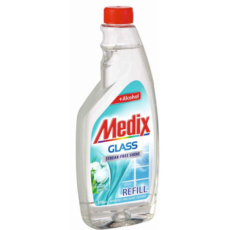 Съставки: Water . Ethanol . Propylene glycol methyl ether . Propylene glycol n-Butyl Ether . Isopropyl Alcohol . Sodium Laureth Sulphate . Parfum . Tetrasodium EDTA . Alkyl polyglycоside .Acrylic Copolymer.За сияен блясък на всички стъклени и гладки повърхности открийте мощната формула с алкохол от MEDIX GLASS, съчетана с нежен аромат, чист и мек като памук.