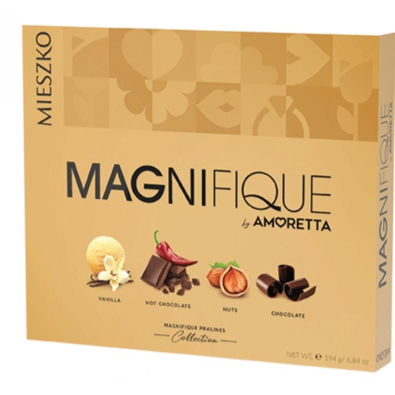 Описание: Пралини в шоколад, млечен шоколад или бял шоколад с пет вкуса: шоколад, карамел с морска сол, джандуя, шампанско, с кокос.