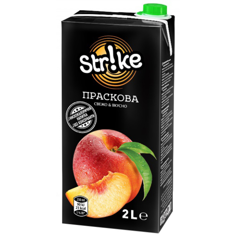Плодова напитка праскова с подсладители.Съдържание на плодове: мин.15%. Съставки: вода, концентрирано пюре от праскова(мин.15%), киселина: лимонена киселина, подсладители: стевиол гликозоиди, сукралоза. Без консерванти. Пастьоризирана. Разклати преди употреба.Да се консумира добре охладена.