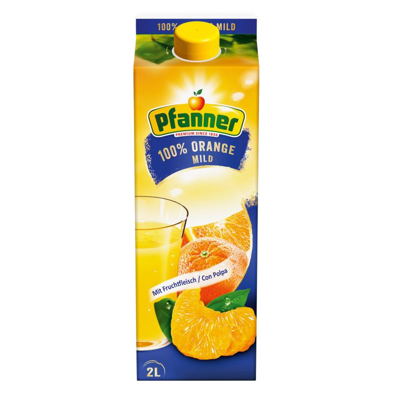 Естествените портокали със своята ниска киселинност и фината плодова каша са вкусната тайна на Pfanner 100% при производството на Orange mild. Тази тайна ги прави не само по-лесно смилаеми, в сравнение с традиционните портокалови сокове, но ги обогатява с повече витамин С. За производството на 2 литра Pfanner 100% Orange Mild биват използвани около 4 кг., от най-качествените, узрели на слънце портокали.
