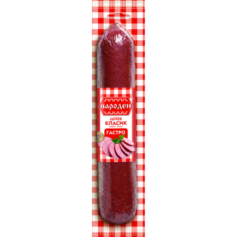 Съставки: свинско месо, вода, механично отделено свинско месо, кожна емулсия [свинска кожа, вода, стабилизатори: дифосфати, полифосфати; сол], соев протеин, сол, млечен протеин (включително лактоза), стабилизатор: трифосфати; антиоксиданти: аскорбинова киселина, Е 301; овкусител: Е 621; оцветител: кармини; говежди протеин, нитритна сол [сол, консервант: Е250], ароматизанти, подправки (съдържат синап и целина). Обвивката е неядивна. Хранителна стойност за 100g продукт: енергийна стойност 1114 kJ/ 268 kcal; мазнини 19g, от които наситени мастни киселини 8.2g; въглехидрати 4.2g, от които захари 1.3g; белтъци 20g; сол 3.0g