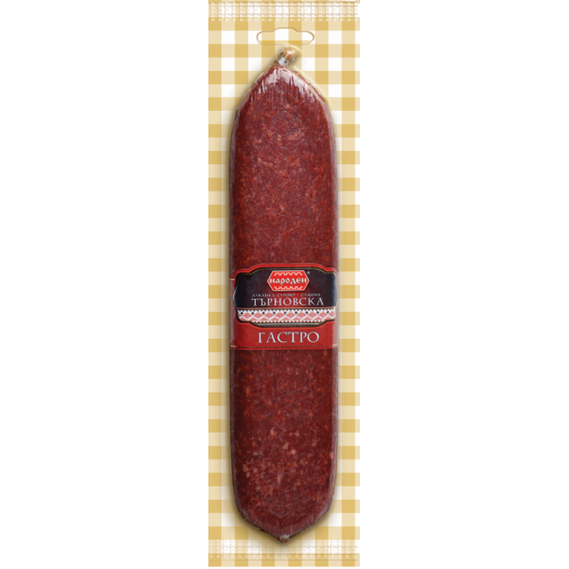 Съставки: свинско месо, вода, сланина, сол, млечен протеин (включително лактоза) овкусител : Е621; оцветител: кармини; декстроза, стабилизатор: Е451; консервант: Е252; антиоксиданти: аскорбинова киселина, Е301; глюкоза, свински протеин, нитритна сол [сол, консервант: Е250], подправки.